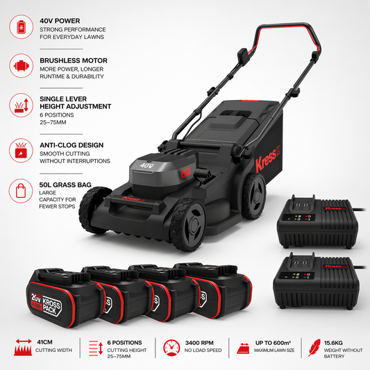 Kress 40V 41cm Brushless Lawn Mower – Smooth, Quiet, and Easy Cutting for Every Garden