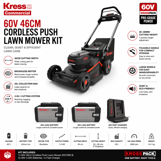 Kress 60V Push Lawn Mower – Powerful, Precise Cutting Performance (46cm)