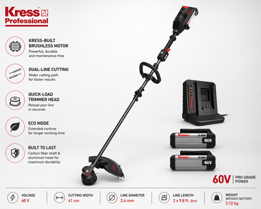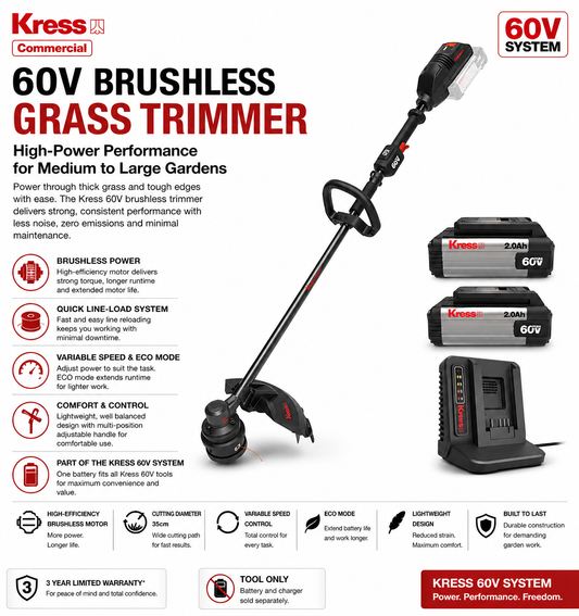 Kress 60V Brushless Grass Trimmer – High Power with Less Effort for Medium to Large Gardens
