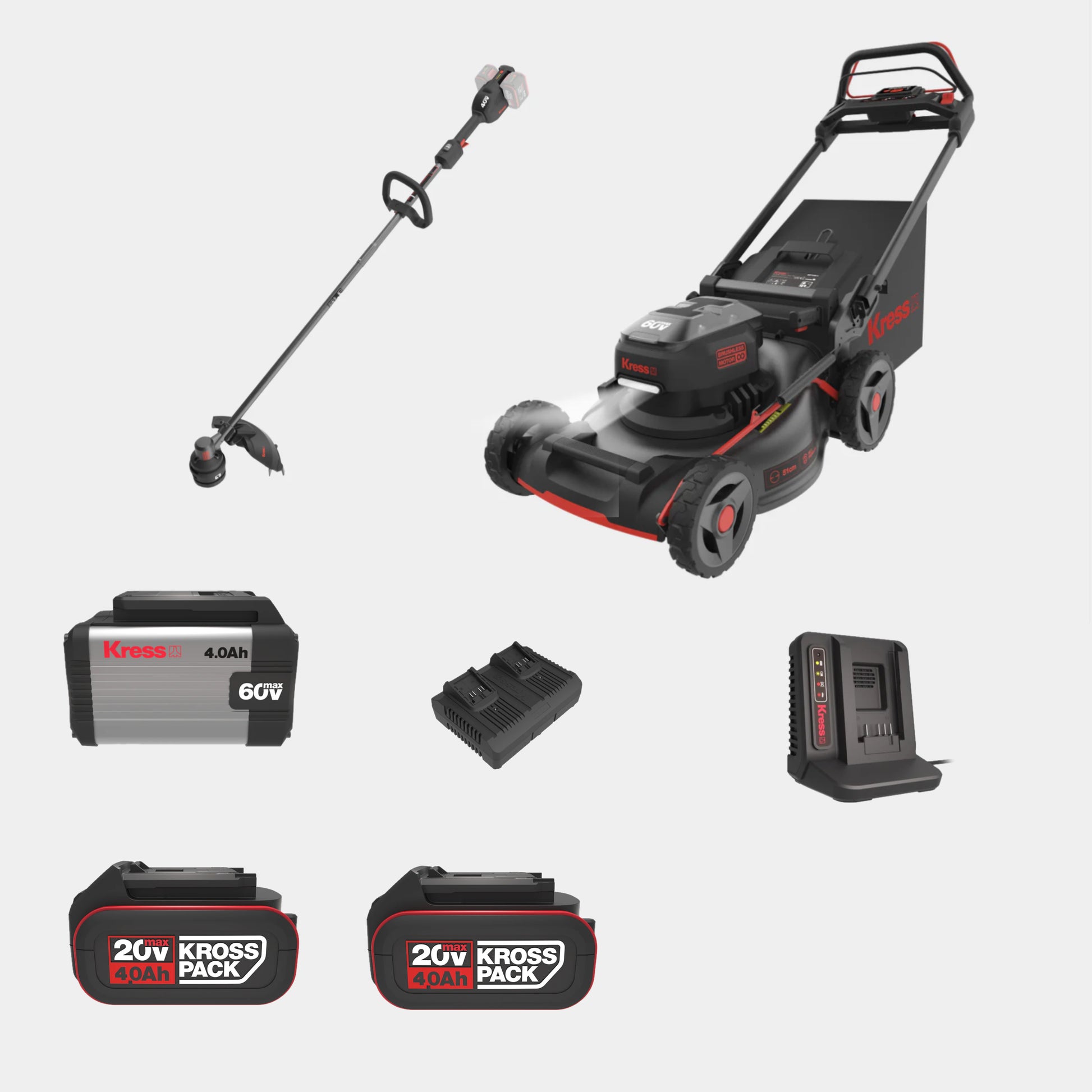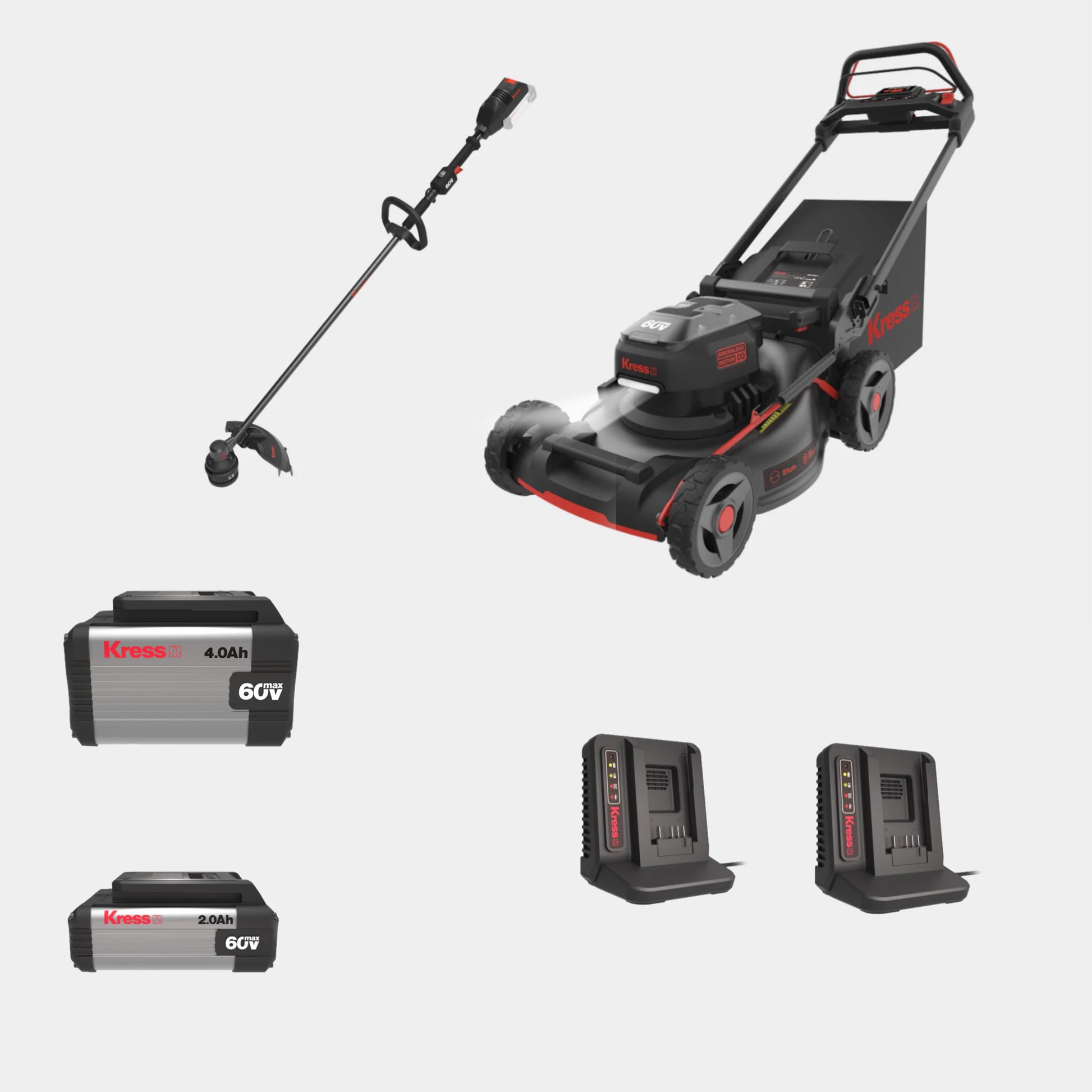 Thanks to the dual battery slots and the Kress 60 V battery system, you can cover more ground without stopping. Spend more time mowing and less time recharging – and when you’re done, use the same battery across all your Kress 60 V tools.