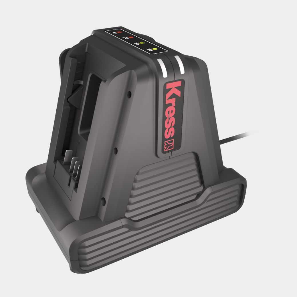 The Kress 60 V 8 A dual charger is designed to efficiently charge two 60 V batteries simultaneously.