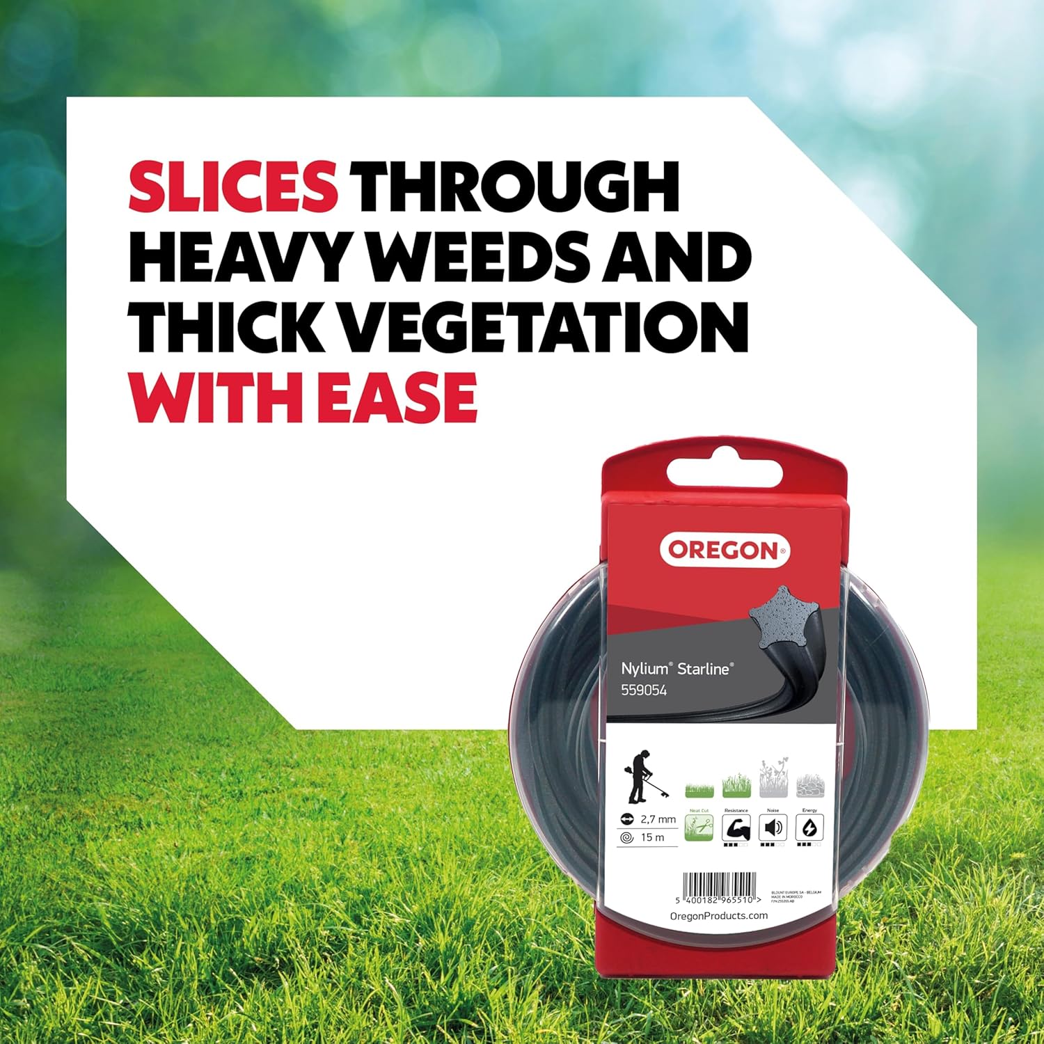 Oregon Nylium Star-Shaped Strimmer Line – 2.7mm x 15m | Heavy-Duty, Professional Nylon with 5 Cutting Edges for Petrol Grass Trimmers & Brushcutters